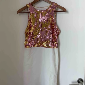 Paljettklänning i nyskick. Lapp sitter kvar. Nypris 700:- En av de snyggaste partyklänningarna jag ägt! Tyvärr för liten för mig.