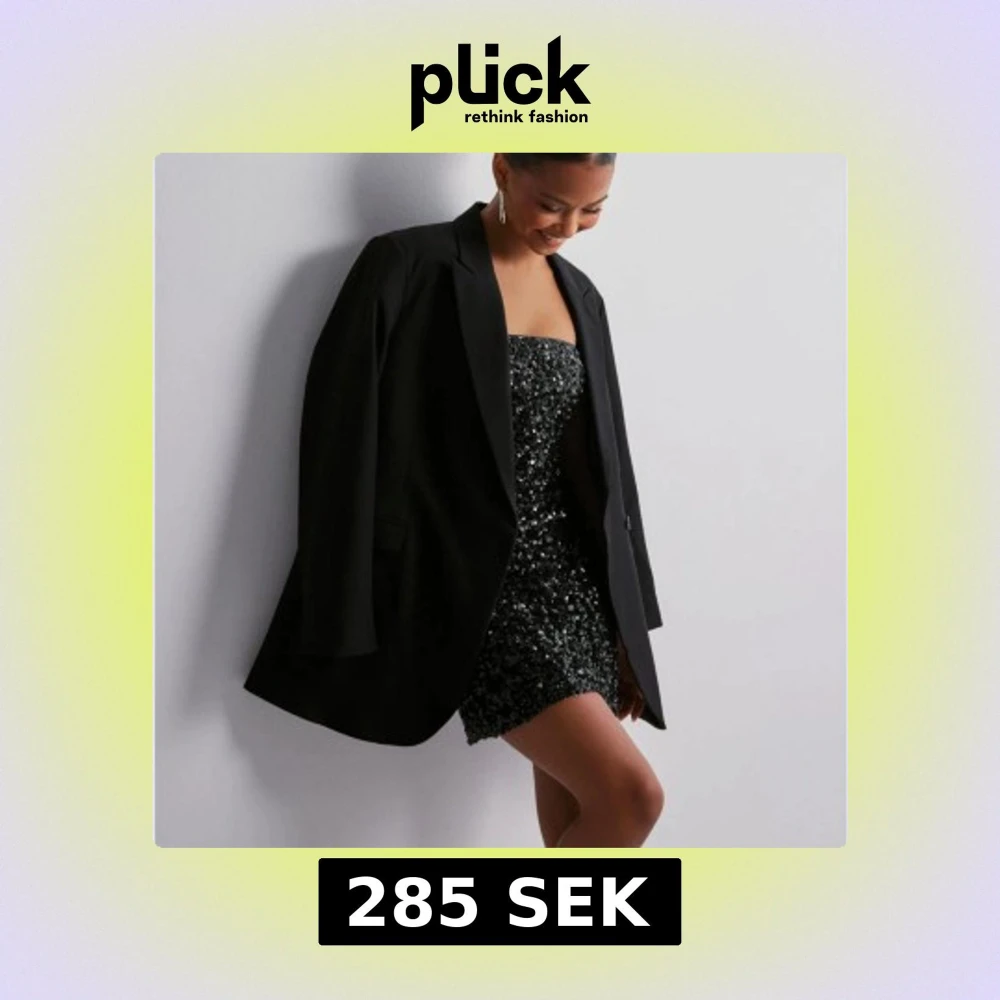 Snygg svart axelbandslös klänning täckt med glittrande paljetter. Perfekt för nyår! Endast använd en gång och är i väldigt bra skick. Slutsåld på hemsidan