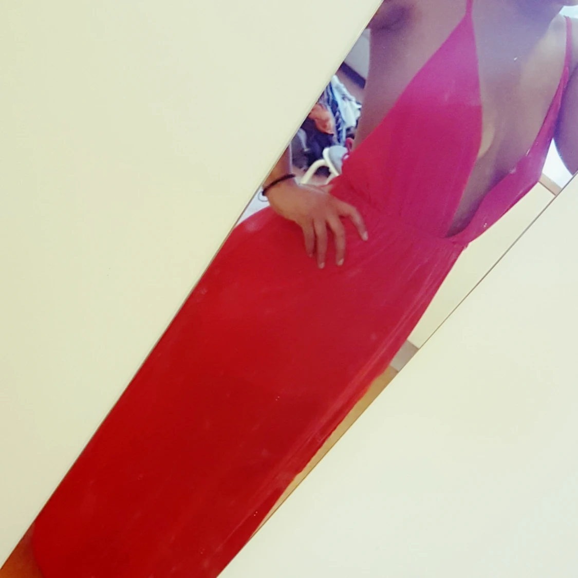 Fin röd klänning köpt från Nelly, som ger en riktig 'röda mattan' känsla.