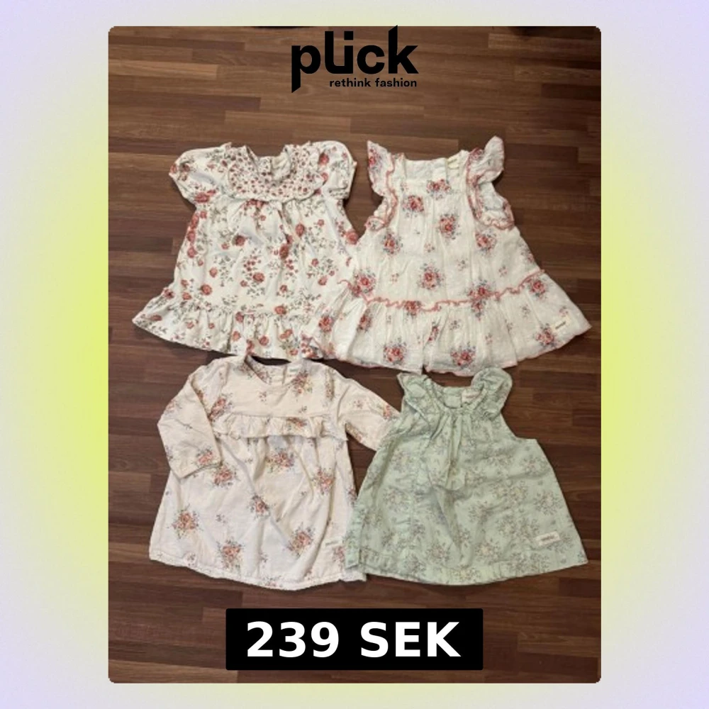 Fyra fina klänningar från Newbie i storlek 62 (2-4mån). Alla i mycket fint skick helt utan anmärkningar. Endast upptvättat eller använt fåtal gånger. Paketpris på denna annons, men går att köpa separat på min profil.