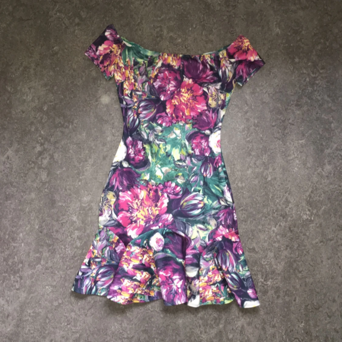 Jätte söt somrig klänning från Nelly. Använd endast en gång, super fint skick. Tight åtsittande som är perfekt att dansa i. Går nedanför axlarna.