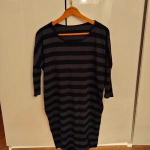 Randig mörk klänning som är skön att bara ha på sig hemma eller ute en sommar dag som höst. Klänningen är i väldigt bra skick och nästan aldrig använd. Storleken är S. Frakt tillkommer.