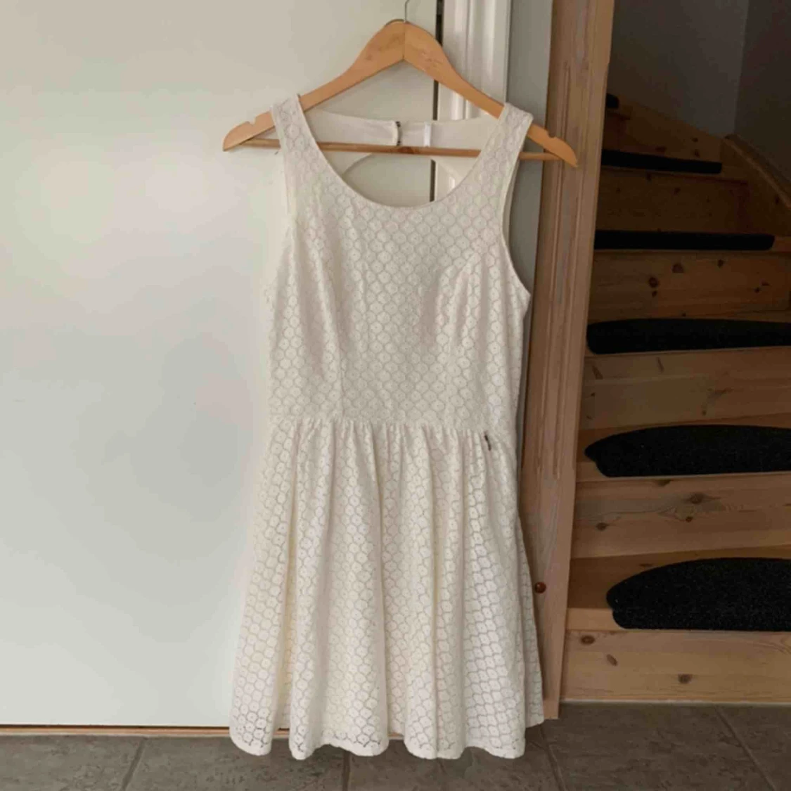 Vit klänning perfekt till student eller skolavslutning. Använd endast 1 gång. Öppen rygg. Hör av dig om du undrar något:)