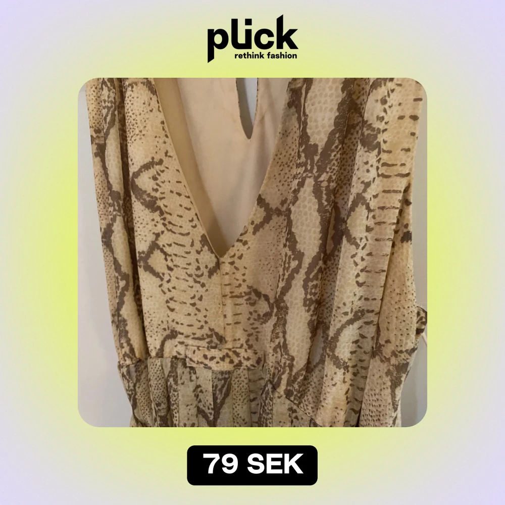 Snygg ormmönstrad klänning från H&M i beige och bruna toner. Den har en v-ringad design och ett knytband i midjan, denna är avtagbar. Perfekt för både vardag och fest!