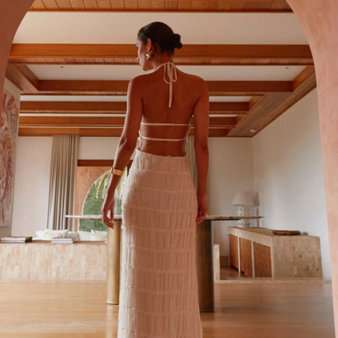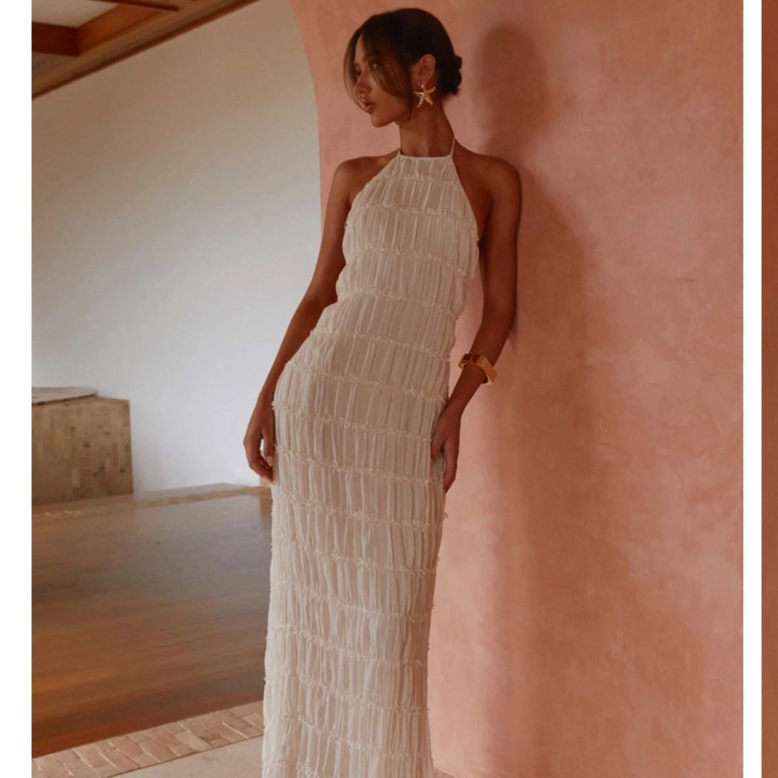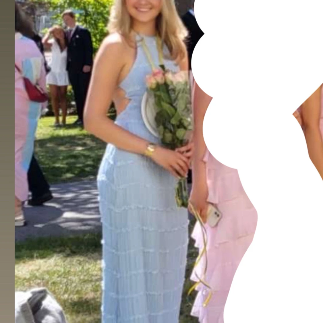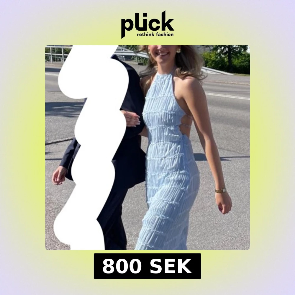 Supersnygg långklänning från peppermayo. Klänningen har halterneck, öppen rygg med snörning och är figurnära. Materialet är lätt och luftigt. Jag har den i färgen ljusblå! Endast använd en gång på skolavslutningen så den är som gott som ny🥰