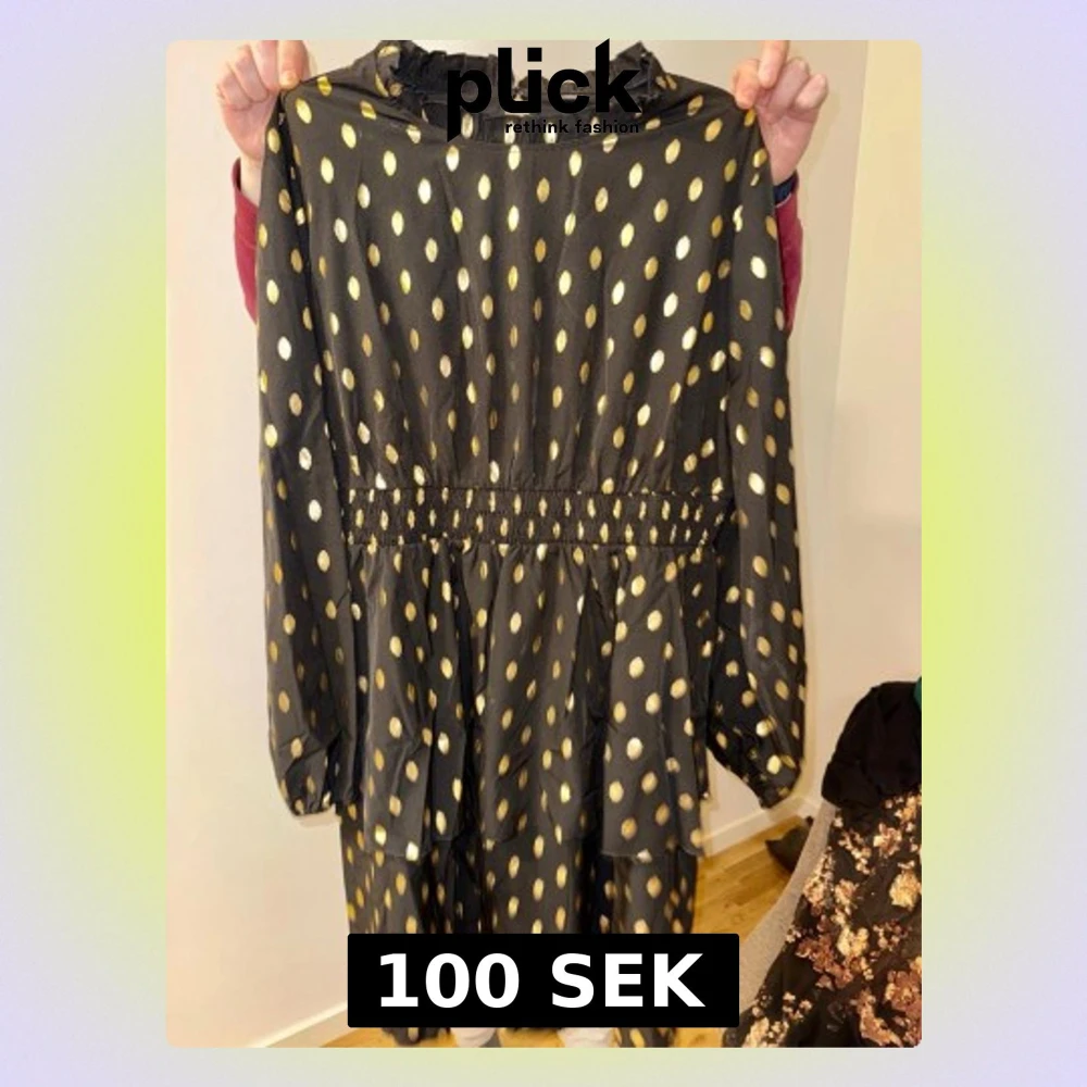 Supersnygg svart långklänning med glittriga guldprickar och långärmad design. Klänningen har resår i midjan för en skön passform och volangdetaljer nedtill. Perfekt för dig som vill sticka ut med ett coolt mönster och metallic-vibe. Väldigt vacker