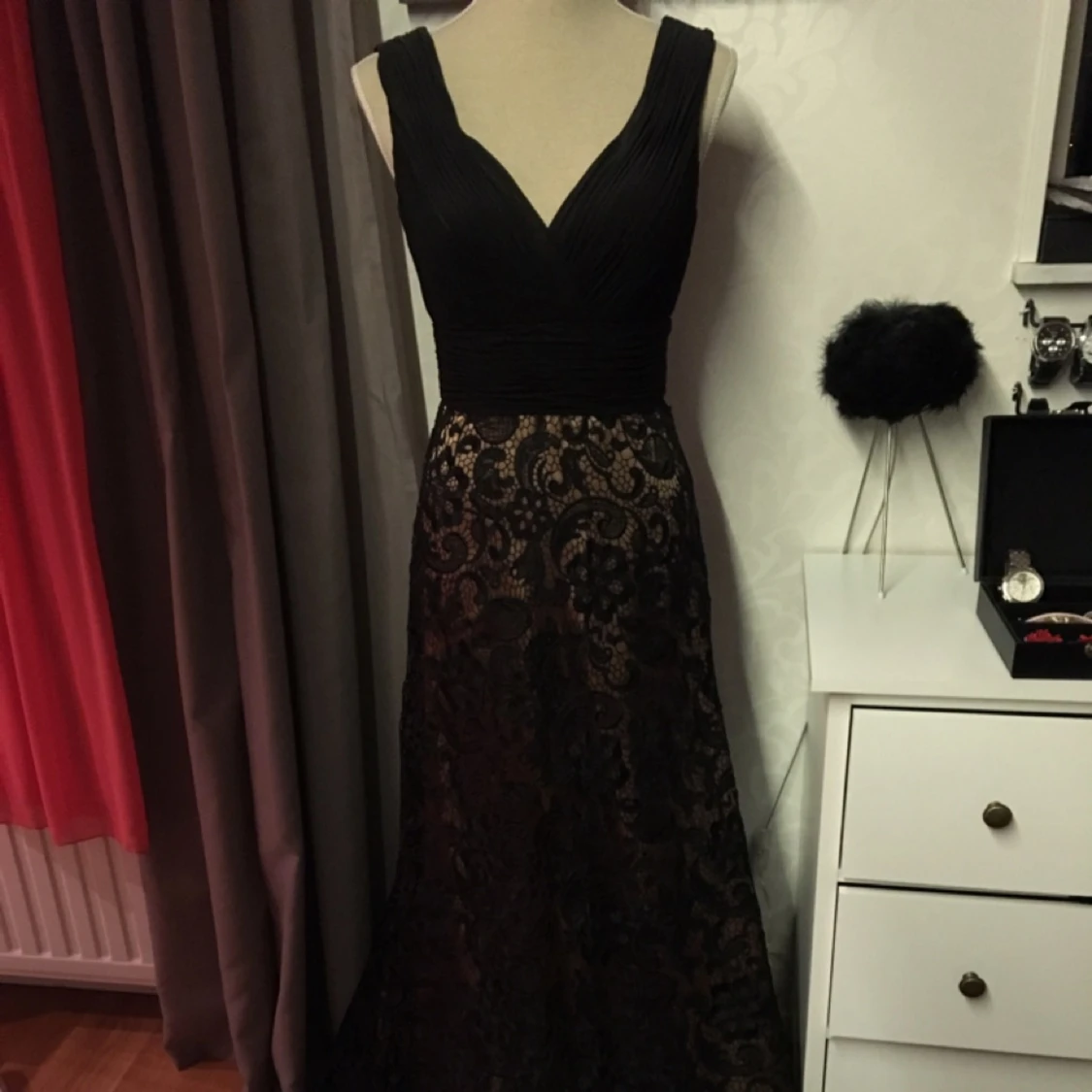 Underbart vacker balklänning i tungt fallande material. Nypris 4000 kr. Använd endast ett par timmar/