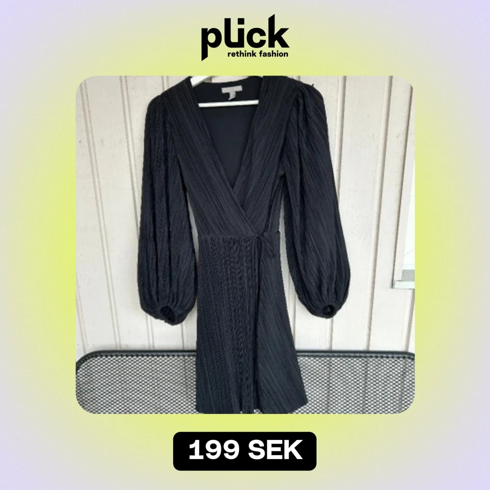 Säljer en svart ribbad omlottklänning med balongärmar. Säljer pga köpte för liten storlek. Aldrig använd, nyskick!