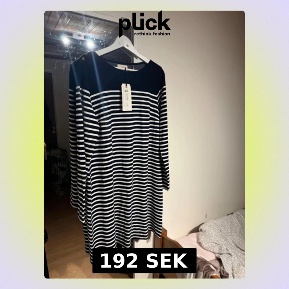 Snygg randig klänning från Lindex i marinblått och vitt. Prislappen sitter kvar!