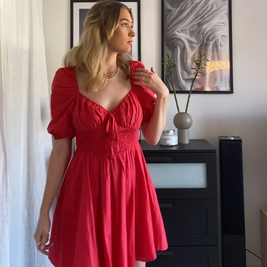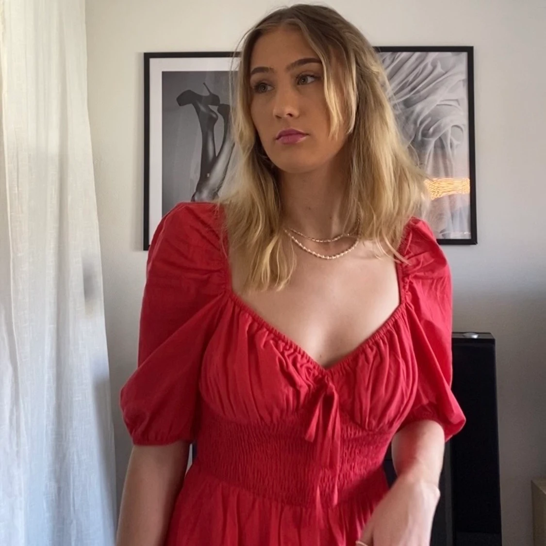 Superfin röd klänning från missguided petite i st.34!🥰 aldrig använd (prislappen är kvar) köpt i slutet av 2021☺️🌸