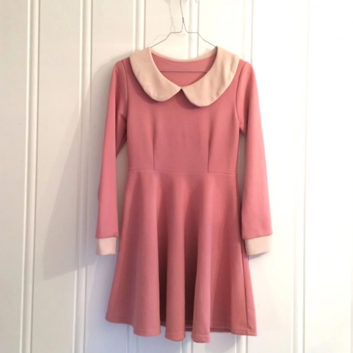 min söta klänning med peter pan collar är lite för stor för mig och jag vill sälja den vidare! dus "vintage rose"färg, markerad midja och stretch i tyget