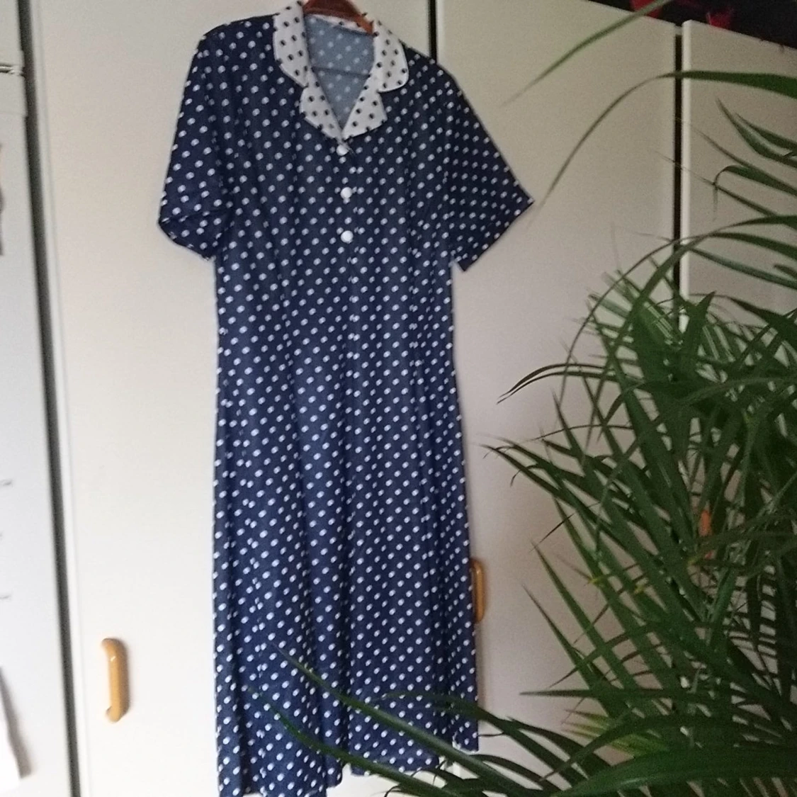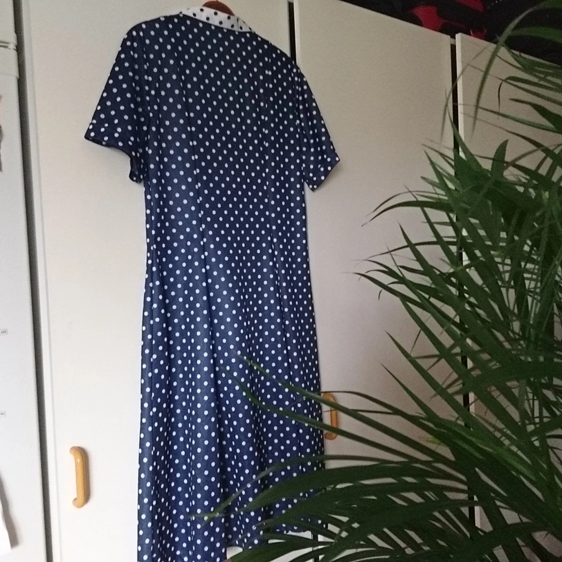 Lång vintageklänning i skönt material. Tyvärr inga lappar kvar i den, bör passa m-l.