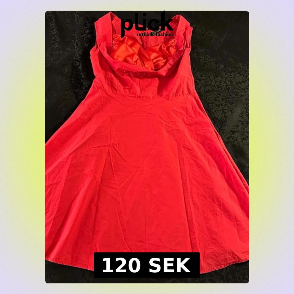 Snygg röd klänning från iHot i storlek L med ett glansigt tyg upptill och en bred krage. Klänningen är ärmlös och har en dragkedja i ryggen. Passformen är normal och kjolen är utsvängd för en feminin siluett.