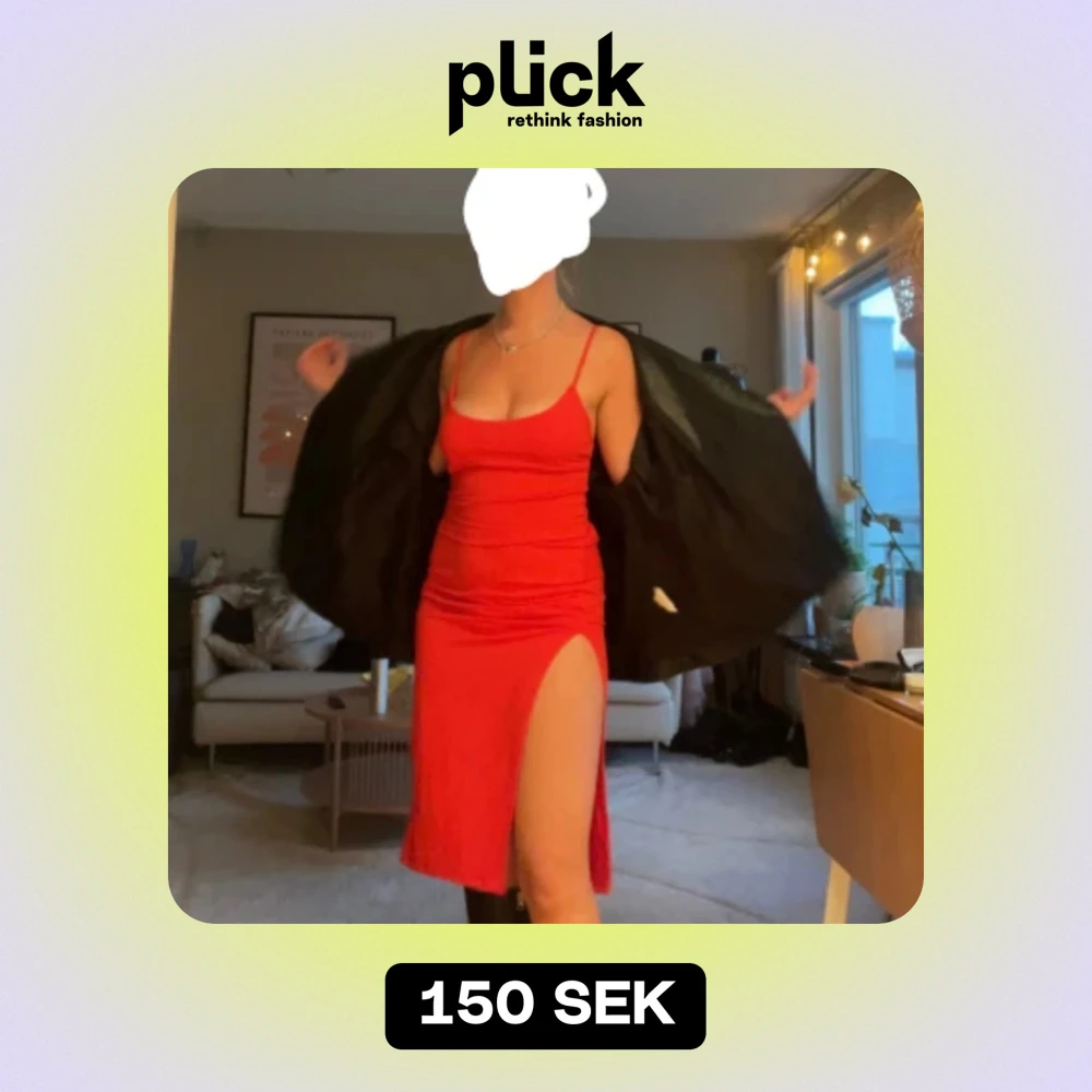 Aldrig buren ute❤️ En röd klänning med tunna axelband och en slits i sidan från Bershka Klänningen är figursydd och har en enkel design. Sitter jättefint på💕