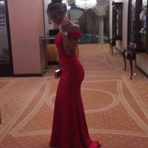 Röd balklänning Använd en gång. Storlek XS Figur sydd. Lite detaljer vid brösten Dragkedja vid ryggen. Nypris :2000kr Tar emot swish helst Köparen står för frakt