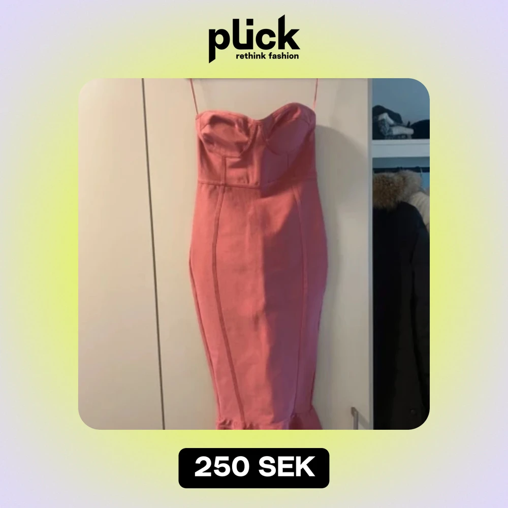 Säljer en superfin rosa axelbandslös klänning med en tight passform. Klänningen har en dragkedja bak och en söt volangdetalj längst ner. Perfekt för fest eller sommarens alla tillfällen! 💖