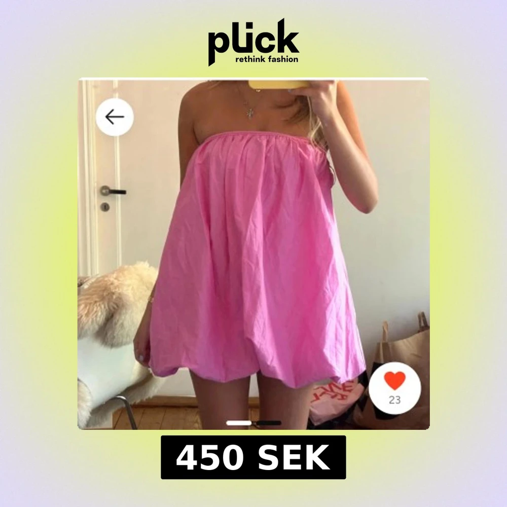 Säljer en söt rosa axelbandslös klänning med en luftig passform.