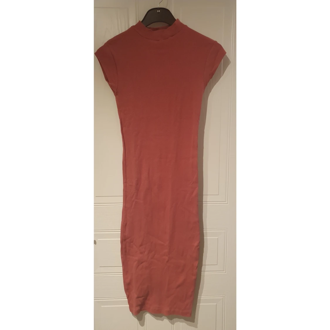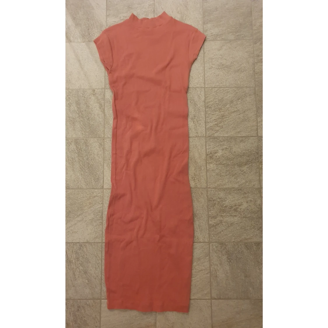 En jätte fin lång rosa klänning i S. 🌸Färgen lutar sig mer mot en vibrant dusty pink. Materialet är lite tjockt så det passar perfekt för våren! Den skulle passa så bra till ett par sneakers eller låga skor 😍 Jag är 170 och den når mitten av mina vader.