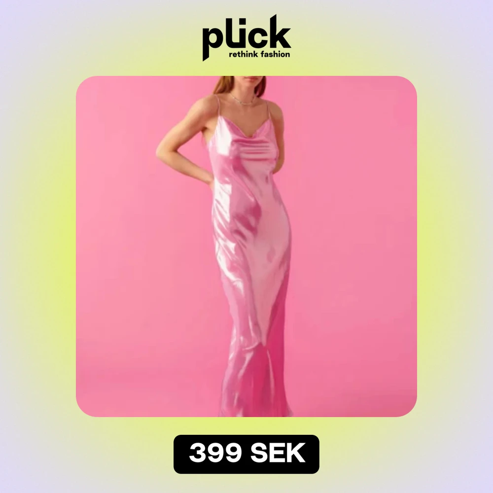 Glansig långklänning med draperad halsringning. Klänningen är rosa och har smala, reglerbara axelband. Använd bara 1 gång Nypris 700kr Färg: begonia pink Mått: 125 cm lång i storlek m