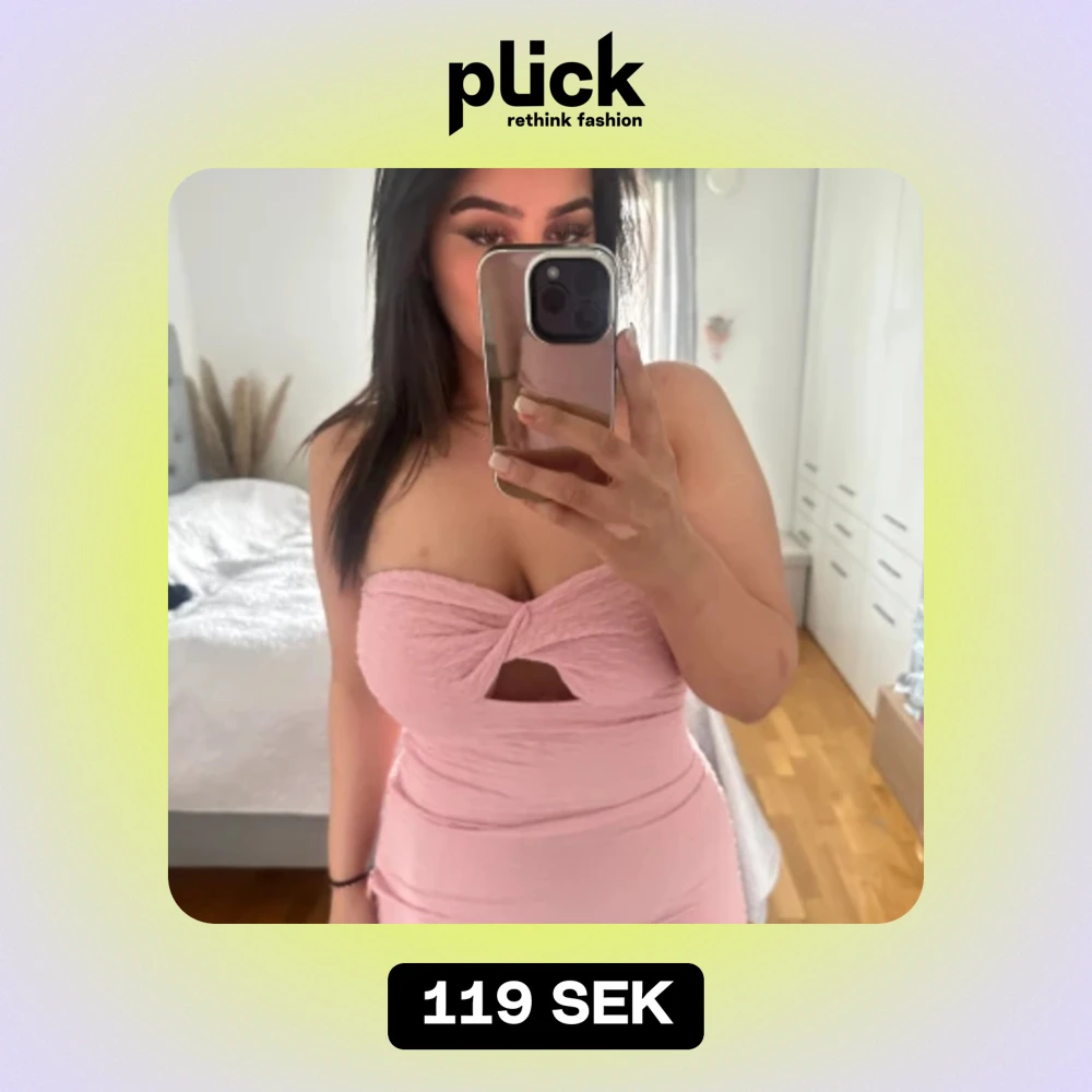 Fin rosa klänning utan band med fin detalj och snörning. Asymmetrisk längd på klänning, smickrande på kroppen. Helt oanvänd!!