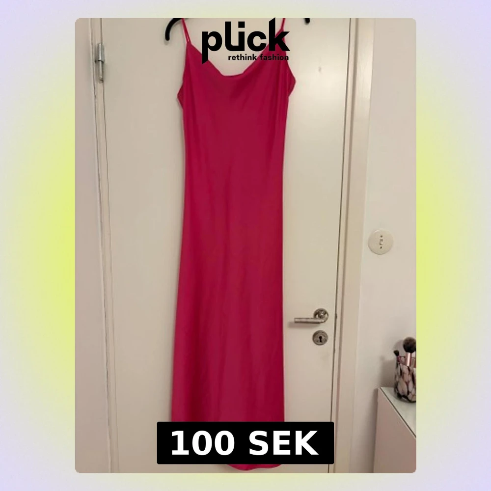 Säljer en snygg långklänning i stark rosa färg med tunna axelband och slinkig passform. Klänningen har en enkel, stilren design och faller mjukt längs kroppen. Perfekt för dig som gillar minimalistisk stil och vill sticka ut med färg.