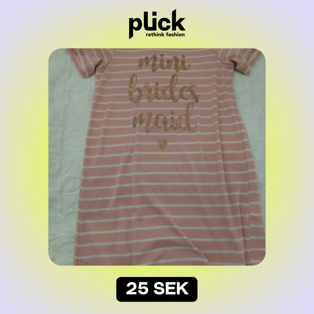 Söt rosa nattlinne med vita ränder och texten 'mini bridesmaid' i guld. Perfekt för en liten tärna på bröllopet! Klänningen har korta ärmar och är gjord i ett mjukt och bekvämt material. Det skönaste nattlinnet.
