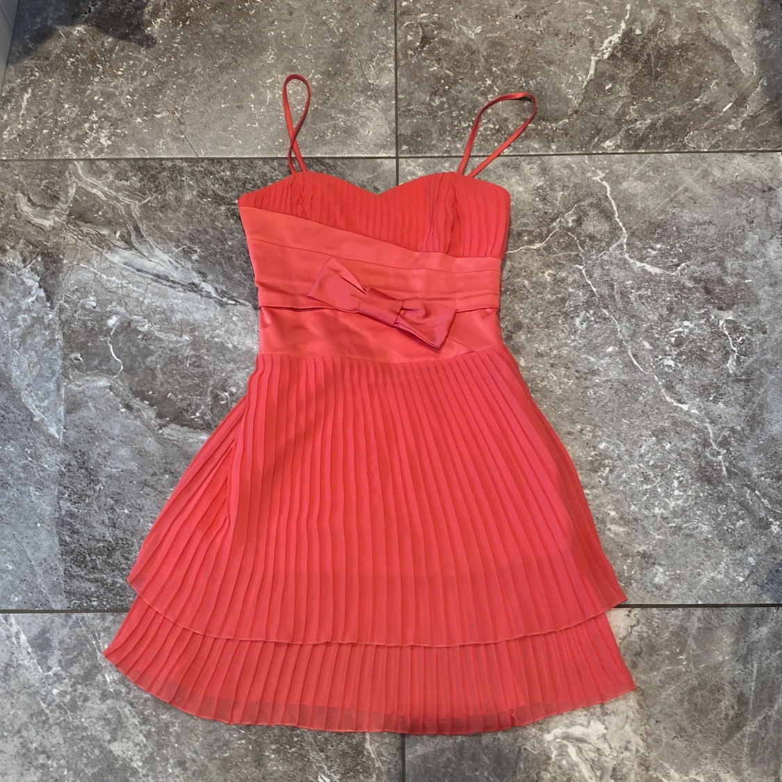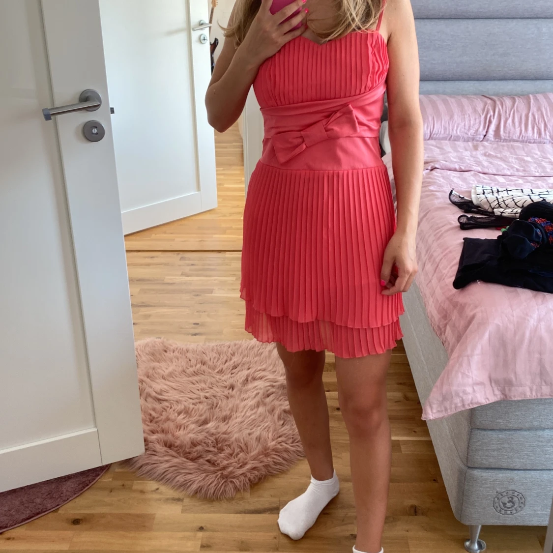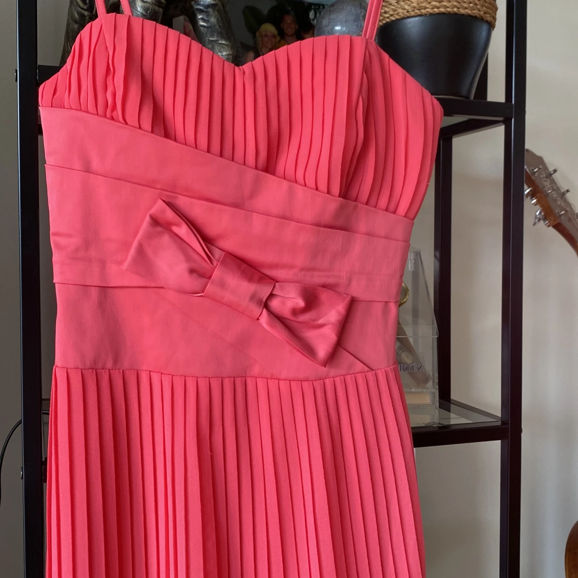 Säljer en superfin rosa klänning med smala axelband och en söt rosett framtill. Klänningen har en plisserad design som ger den ett elegant och lekfullt utseende. Perfekt för sommarens fester eller en speciell kväll ute! 💖