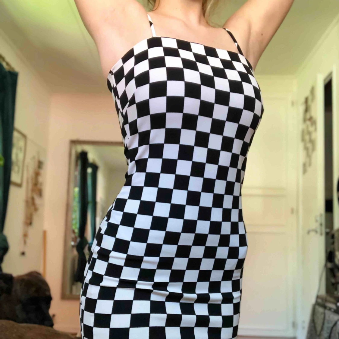 Rutig klänning köpt på fashionNOVA stretchig material Frakt tillkommer