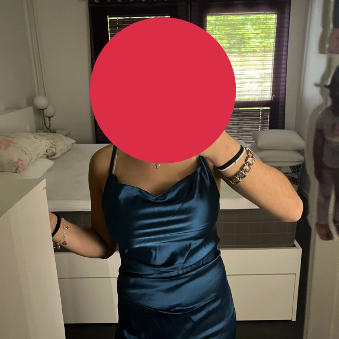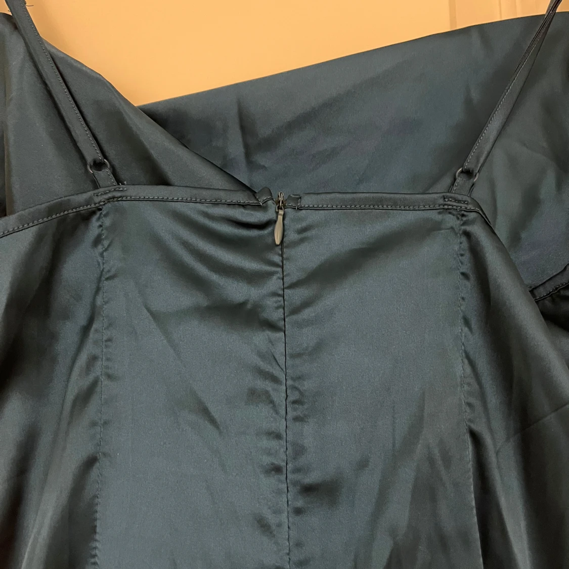 Säljer en elegant mörkblå långklänning i glansigt material med smala axelband. Har aldrig använts, ser helt ny ut.💙💙💙