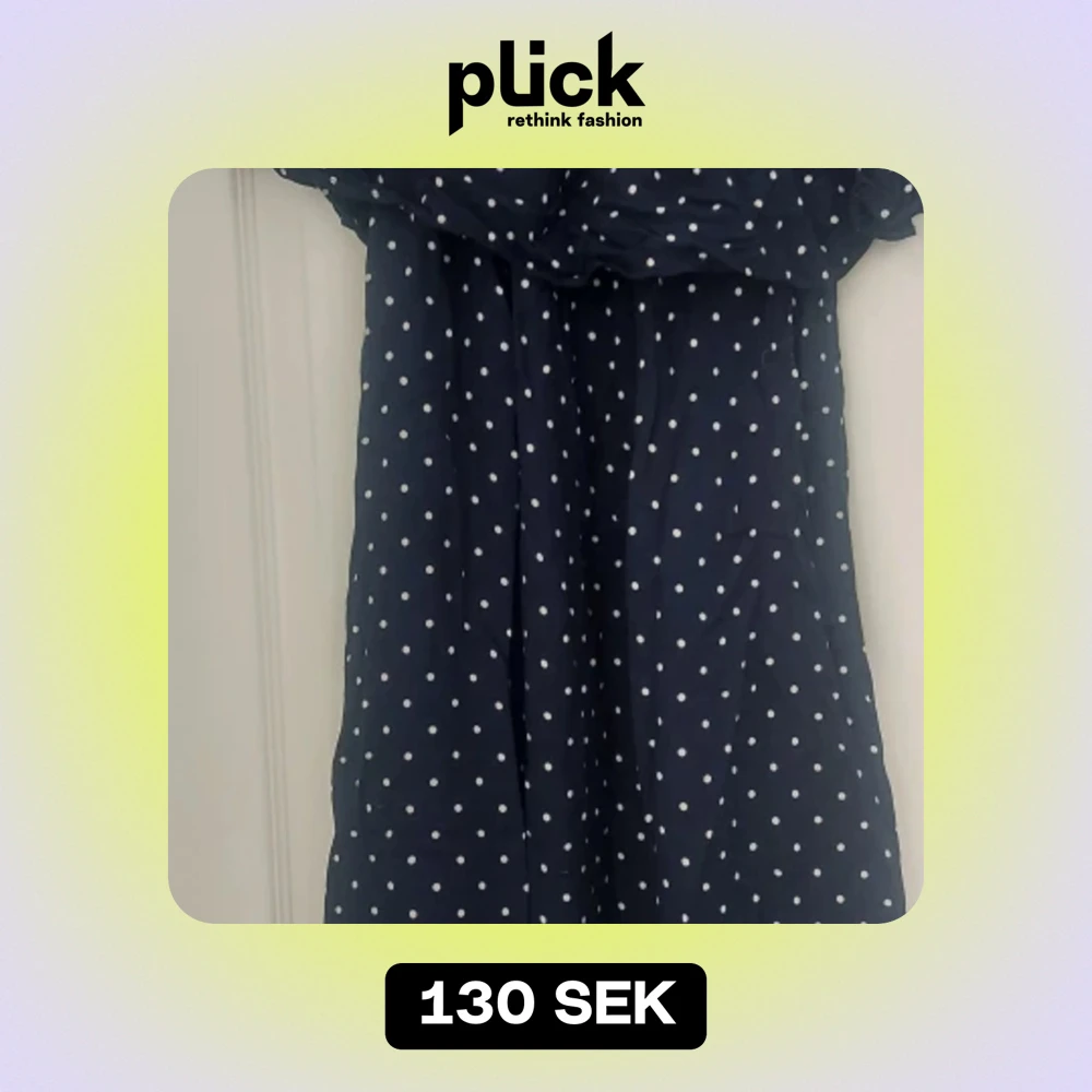 Säljer en superfin mörkblå klänning med vita prickar. Klänningen är perfekt för sommarens alla fester och har en söt offshoulder-design. Den är i nyskick och passar perfekt för en dag på stan eller en kväll ute. Materialet känns lätt och luftigt, vilket gör den bekväm att bära hela dagen.