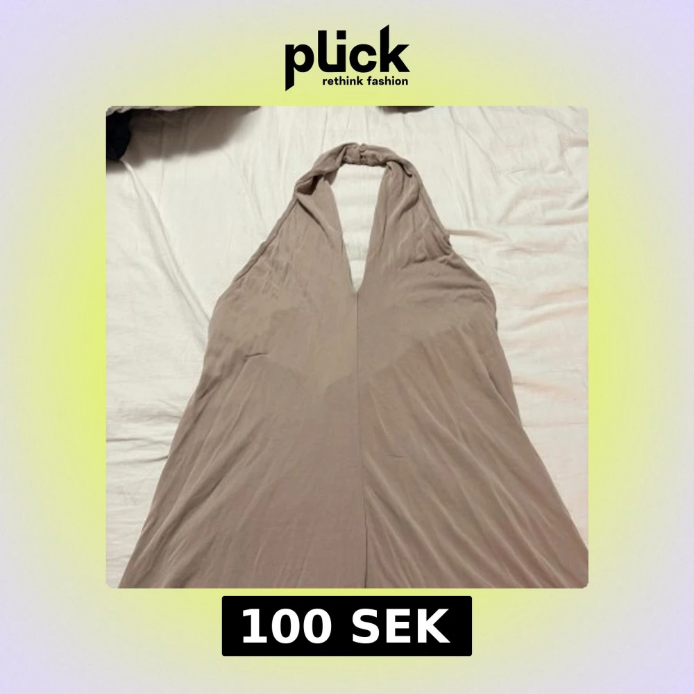 Säljer en beige långklänning från MNG med halterneck och djup v-ringning, öppen rygg. Klänningen har knappar i nacken och är tillverkad i ett mjukt, lätt material som faller snyggt. Perfekt för dig som gillar stilrena och enkla plagg med snygg siluett.