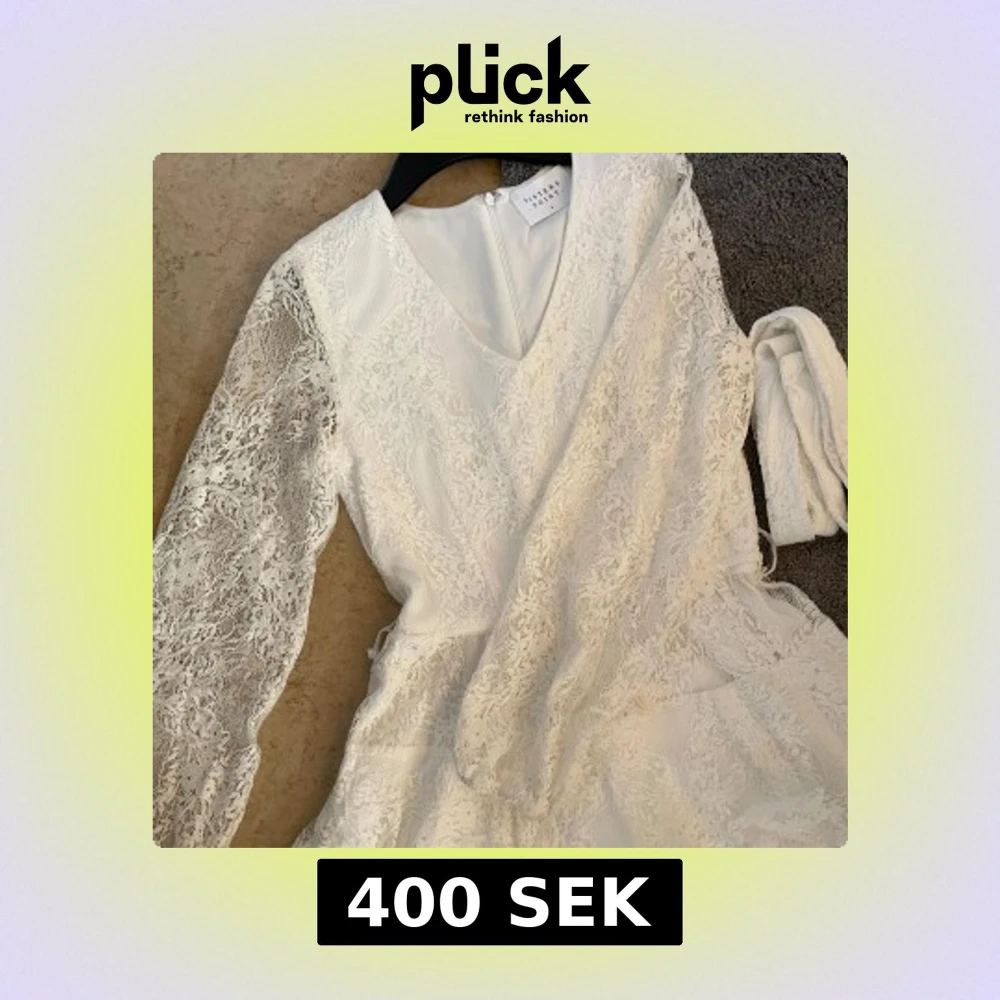 Vit spetsklänning med volang - Supersnygg vit kortklänning i spets med volangkant och ballongärmar. Klänningen har hög hals, markerad midja och dragkedja i ryggen. Detaljerad spets med blommigt mönster och transparenta partier ger en lyxig känsla. Perfekt för dig som vill sticka ut! Perfekt till studenten. Storleksmässigt passar den S och M. Den är helt ny. Kan tänka mig att ändra pris