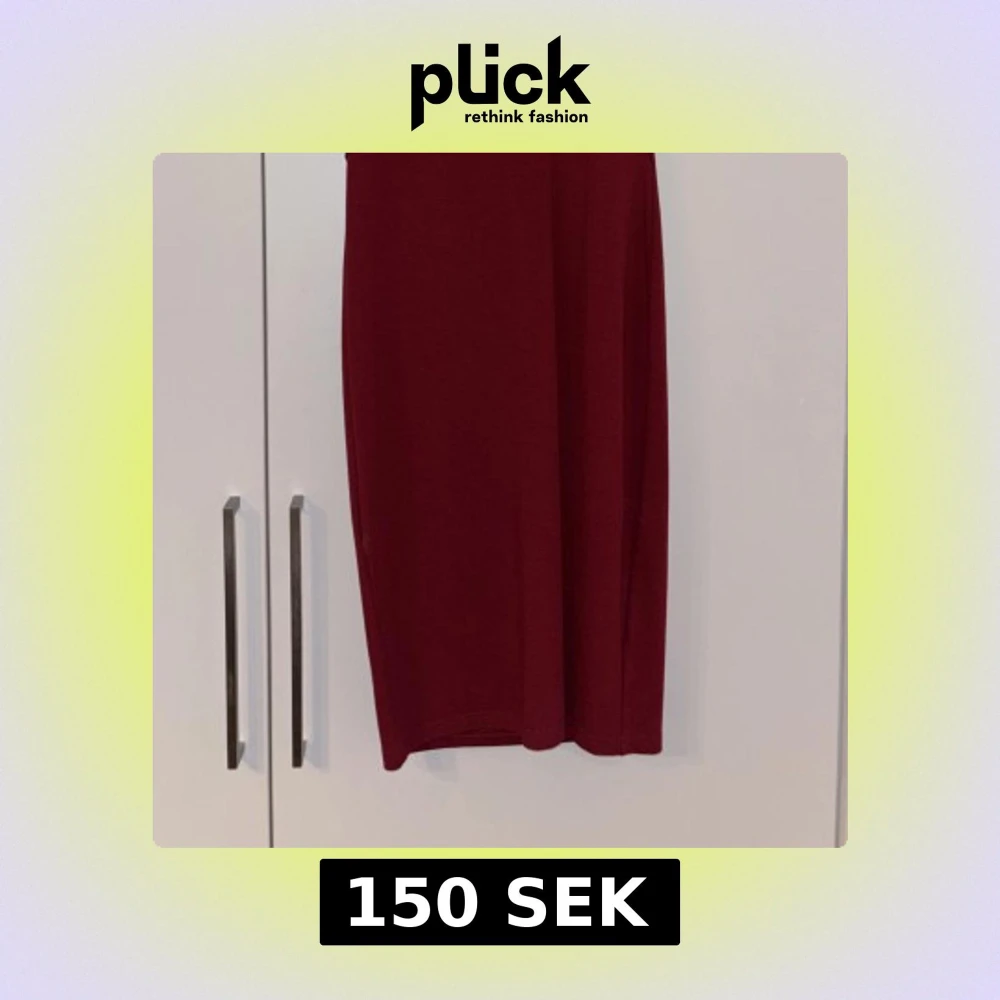 Vinröd klänning i mjukt material med markerat midjebälte och dekorativt spänne. Klänningen har volangdetaljer vid axlarna och en rak, elegant siluett som slutar strax under knät. Perfekt för dig som gillar stilrena och feminina plagg.