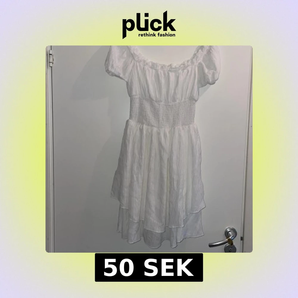 Superfin vit kortklänning med offshoulder och smockad midja. Klänningen har volangig kjol och puffiga korta ärmar, perfekt för sommarens alla tillfällen. Lätt och luftig i materialet, ger en romantisk vibe.