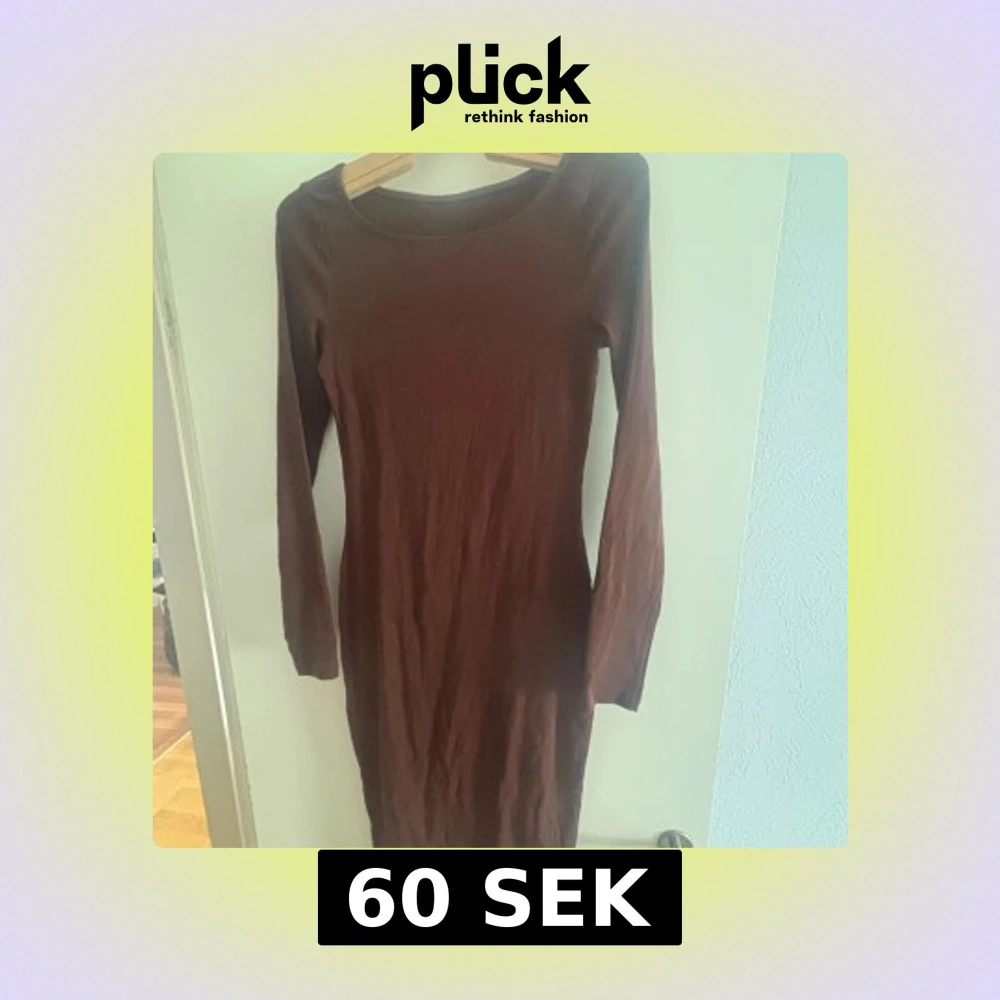 En enkel och stilren brun klänning med lång ärm och rund halsringning. Modellen är kroppsnära och går ner till knäna, perfekt för dig som gillar en minimalistisk look.