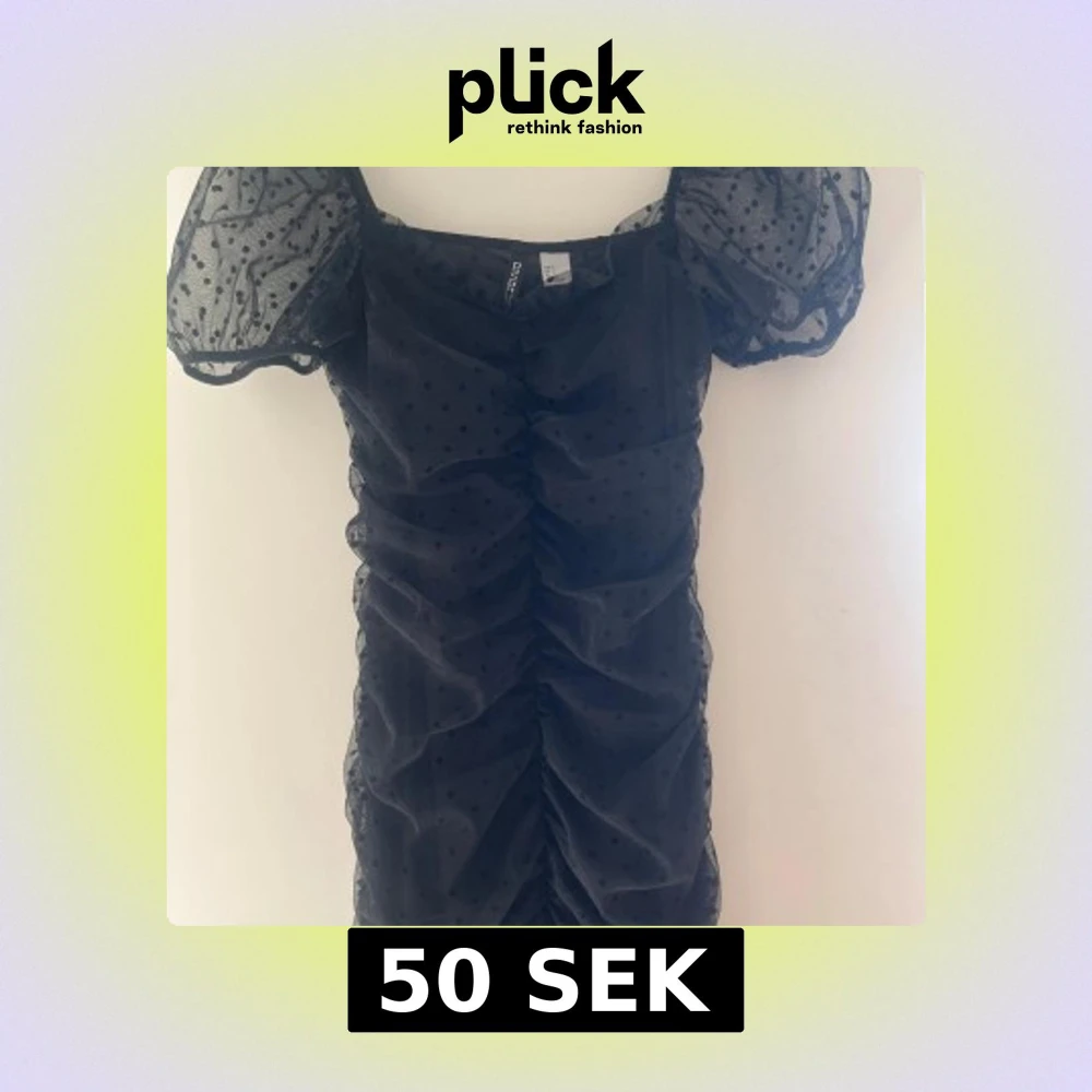 Supersnygg svart kortklänning från Divided (HM) med puffiga kortärmar i mesh och prickigt mönster. Klänningen har rynkade detaljer framtill.❣️