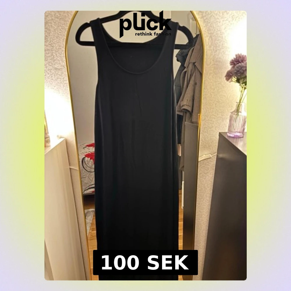 Enkel och stilren svart långklänning med ärmlös design och rund halsringning. Klänningen har rak passform och är tillverkad i mjuk bomull, perfekt för en clean och avslappnad look.