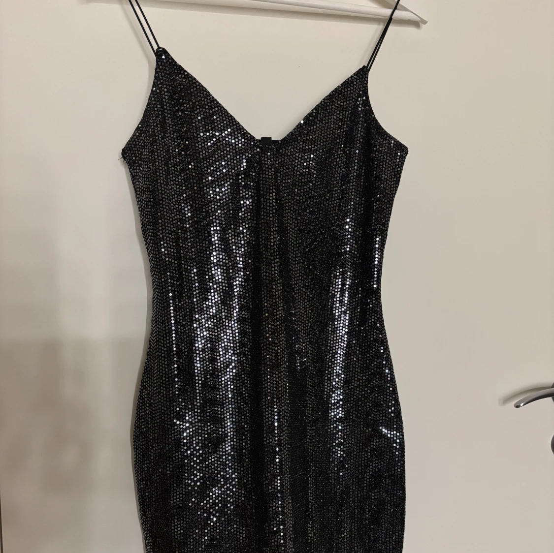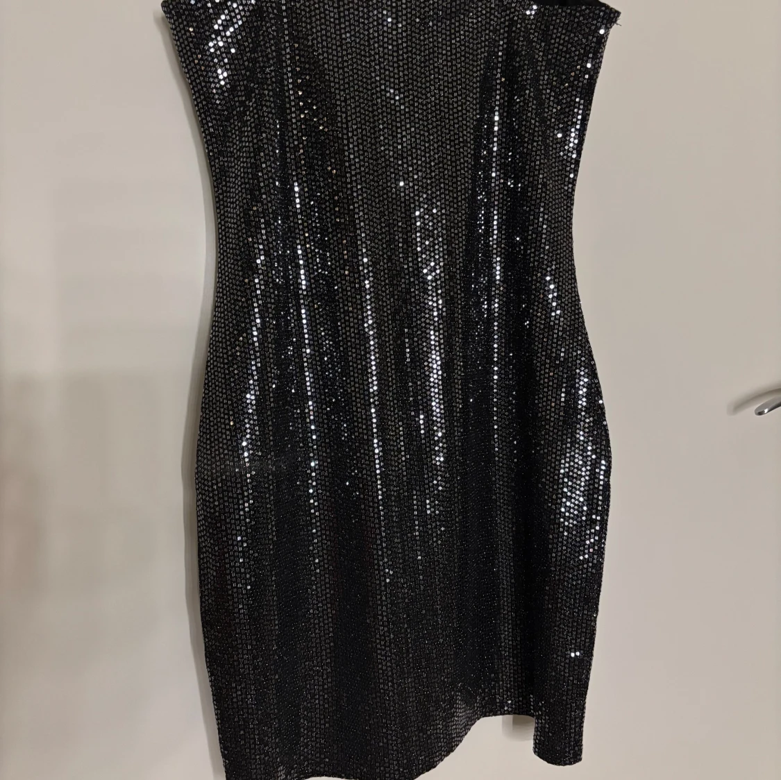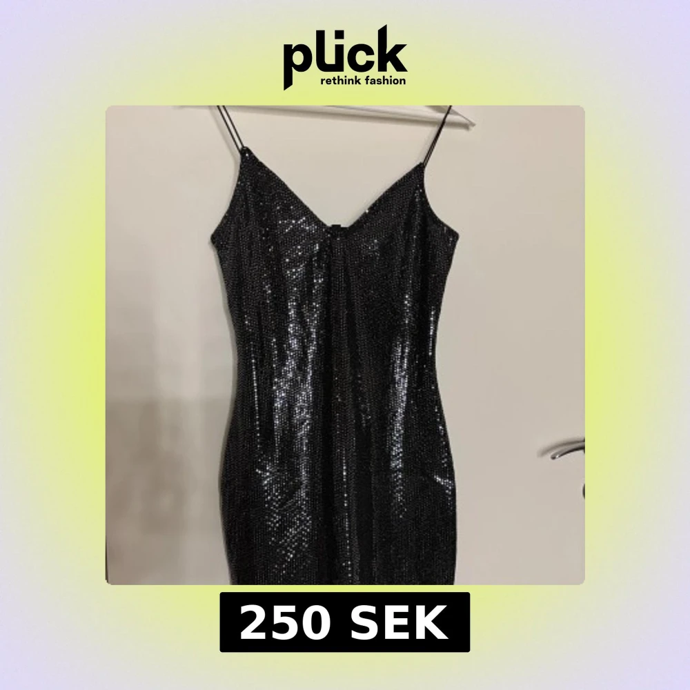 Supersnygg svart kort klänning med tunna axelband och paljetter💕💕