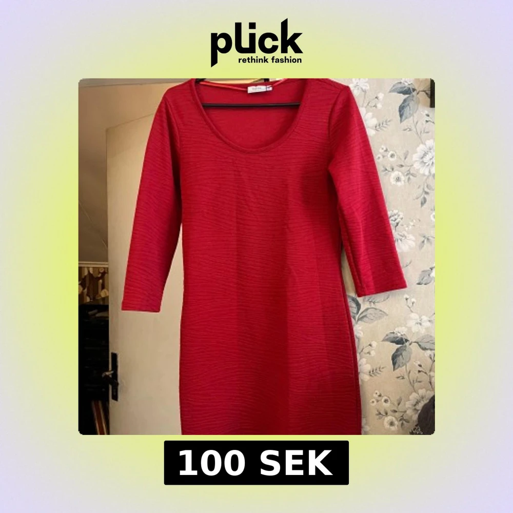 Snygg röd klänning från Fransa med trekvartsärm och rund halsringning. Perfekt för både vardag och festliga tillfällen. Klänningen har en enkel och stilren design som gör den lätt att matcha med olika accessoarer.