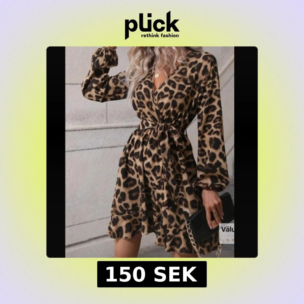Snygg kort leopardmönstrad omlottklänning med långa ärmar och knyt i midjan. Klänningen har volangdetaljer nertill och v-ringad hals. Perfekt för dig som vill sticka ut med ett djurmönster och en feminin siluett.