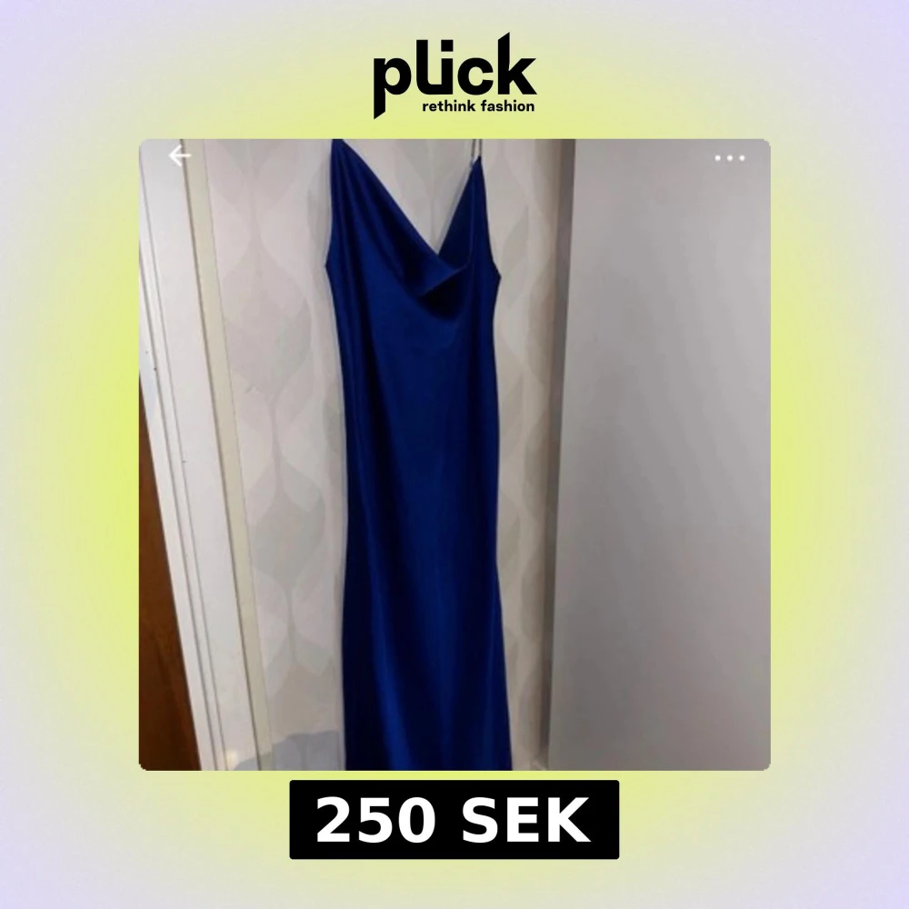 Säljer en elegant blå långklänning med smala glittriga axelband och draperad urringning. Klänningen har en slank siluett och är tillverkad i ett glansigt material som ger en lyxig känsla. Perfekt för speciella tillfällen. Aldrig använd, helt ny!