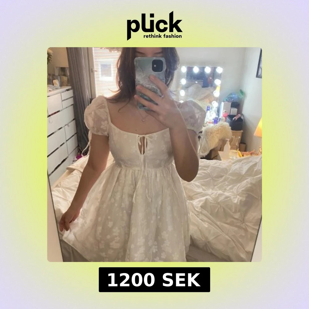 Klänning från Lulu”s super fina klänningar.Ny utan lapp. Supersöt vit klänning med blommigt mönster och puffiga kortärmar. Klänningen har knytning framtill vid bysten och en lätt utställd kjol. Perfekt för sommarens alla tillfällen! Studentklänning, student, midsommar, midsommarklänning, vit klänning.