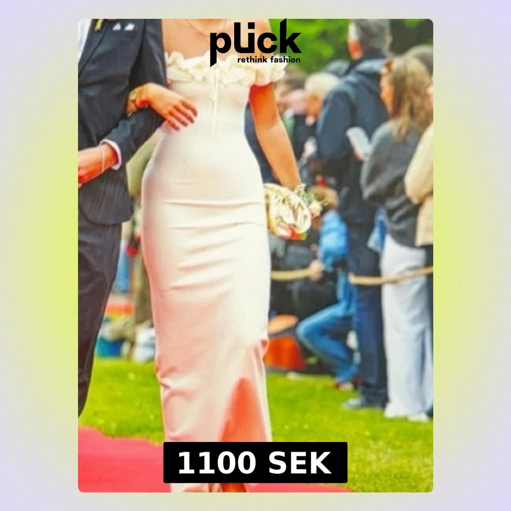 Supersnygg vit långklänning från Positano med offshoulder och volangdetaljer runt axlarna. Klänningen har snörning framtill och är figurnära med en elegant siluett. Perfekt till balen!