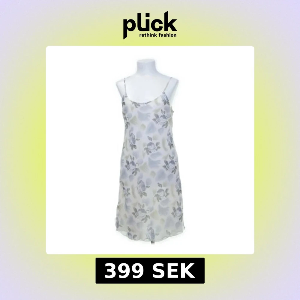 Supersöt kortklänning i 100% silke från N.E.W.O.R.L.D Milano. Ljus botten med blå och grå blommor, tunna axelband och flowig passform. Perfekt för dig som gillar romantiska vibes och vill ha något luftigt och elegant.