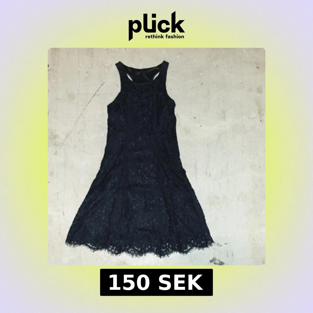 Elegant svart klänning i spets med ärmlös design och rund hals. Klänningen har en vacker spetsdetalj som ger en romantisk känsla. Perfekt för speciella tillfällen.
