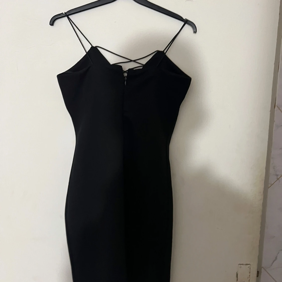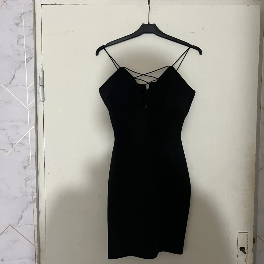 Snygg svart kort klänning från NLY One med tunna axelband och trendig snörning framtill. Klänningen har en figurnära passform och dragkedja bak. Perfekt för dig som gillar stilrena och enkla plagg med en twist.