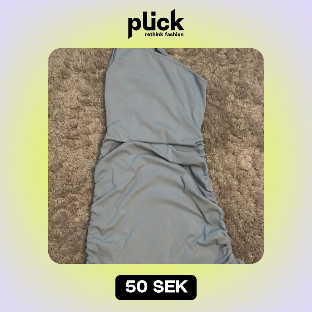 Säljer en superfin ljusblå oneshoulder klänning i ribbat material. Den är tight och har snygga rynkade detaljer på sidorna som ger en cool look💙