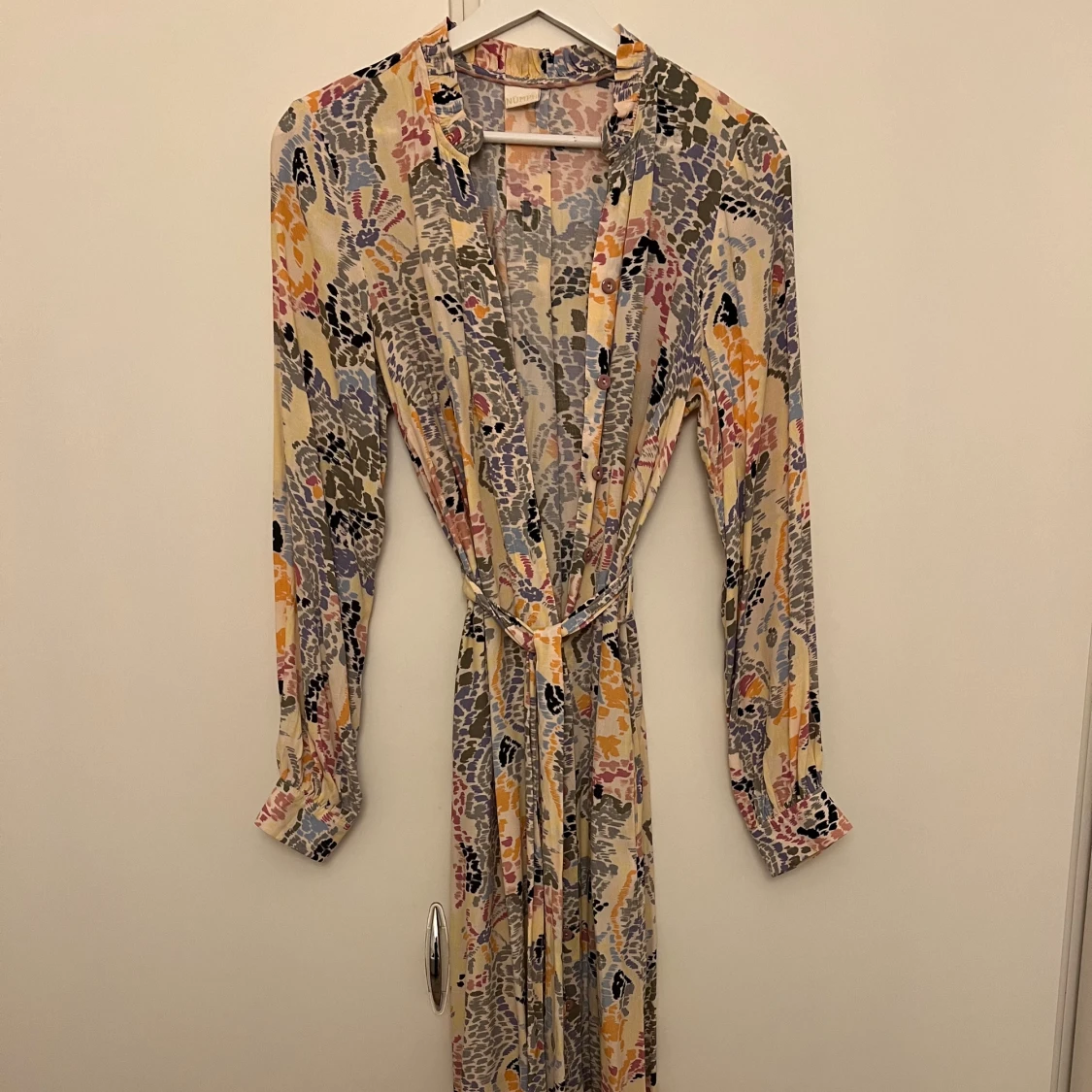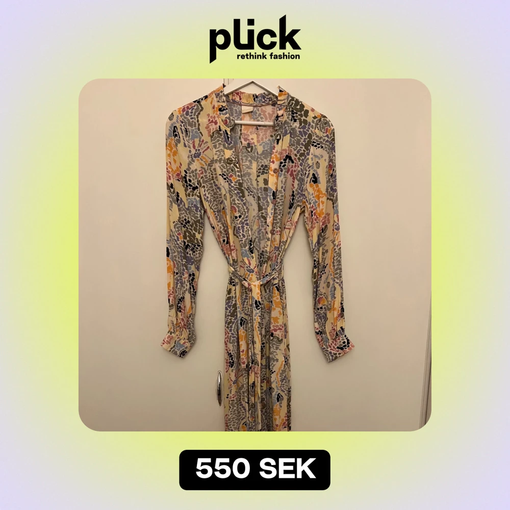 Säljer en superfin långklänning med ett färgglatt mönster. Klänningen har långa ärmar och ett knytbälte i midjan för en snygg passform. Perfekt för både vår och sommar men även höst med boots! 🌸