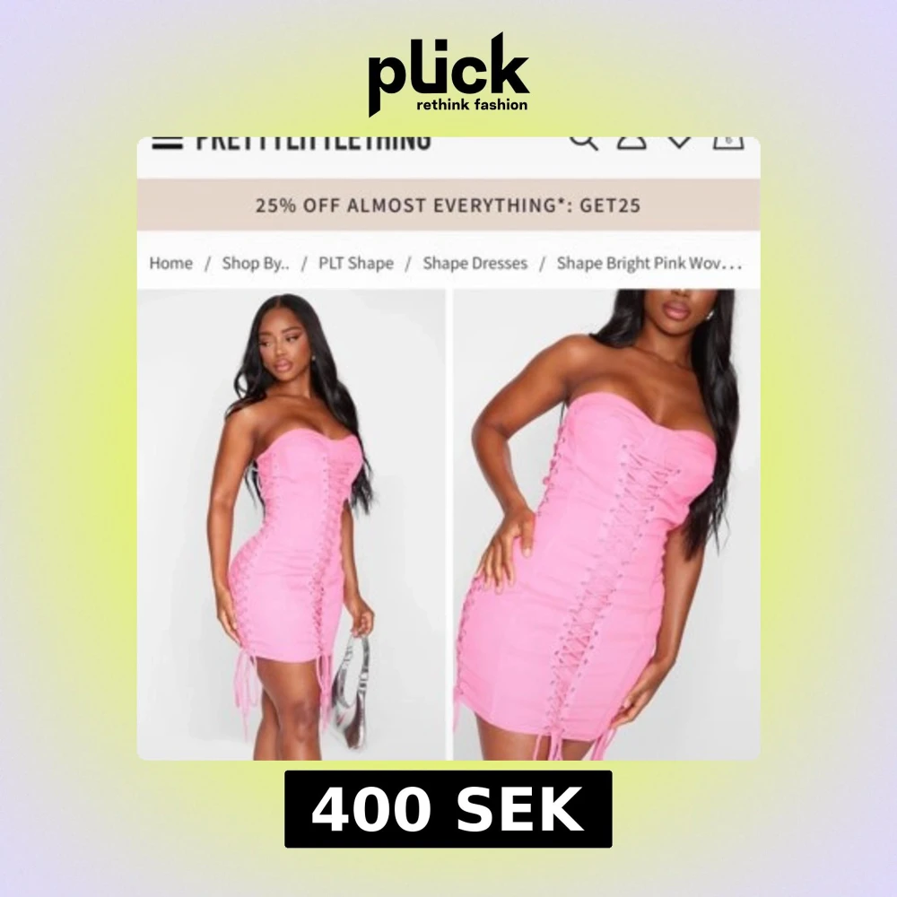 Snygg rosa axelbandslös klänning med snörning framtill från PrettyLittleThing. Perfekt för en kväll ute med vänner. Klänningen har en tight passform som framhäver figuren.