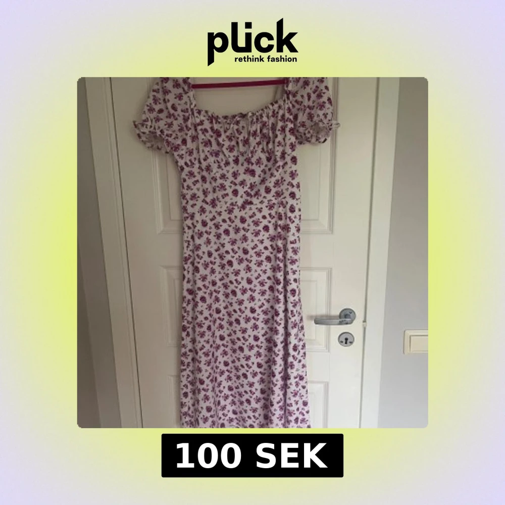 Supersöt långklänning i vitt med lila blommigt mönster och puffärmar. Klänningen har snörning vid bysten och en luftig passform, perfekt för varma dagar💌